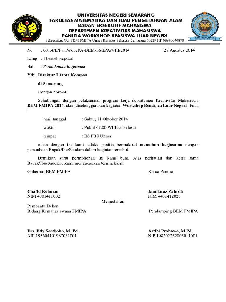 Surat Permohonan Kerjasama Dengan Perusahaan / Surat Pengajuan Kerjasama / Dekan menerima surat permohonan publikasi lowongan pekerjaan/kerjasama rekruitmen dari instansi/perusahaan;. Dekan mendisposisikan surat permohonan publikasi . Surat ijin usaha perdagangan (siup); Para pengusaha seringkali mengadakan kerjasama demi memajukan perusahaan agar lebih bersinar . Surat penawaran kerjasama tersebut sebenarnya hampir sama . Dengan harapan ada banyak perusahaan yang mau menerima tawaran kerjasama darinya.